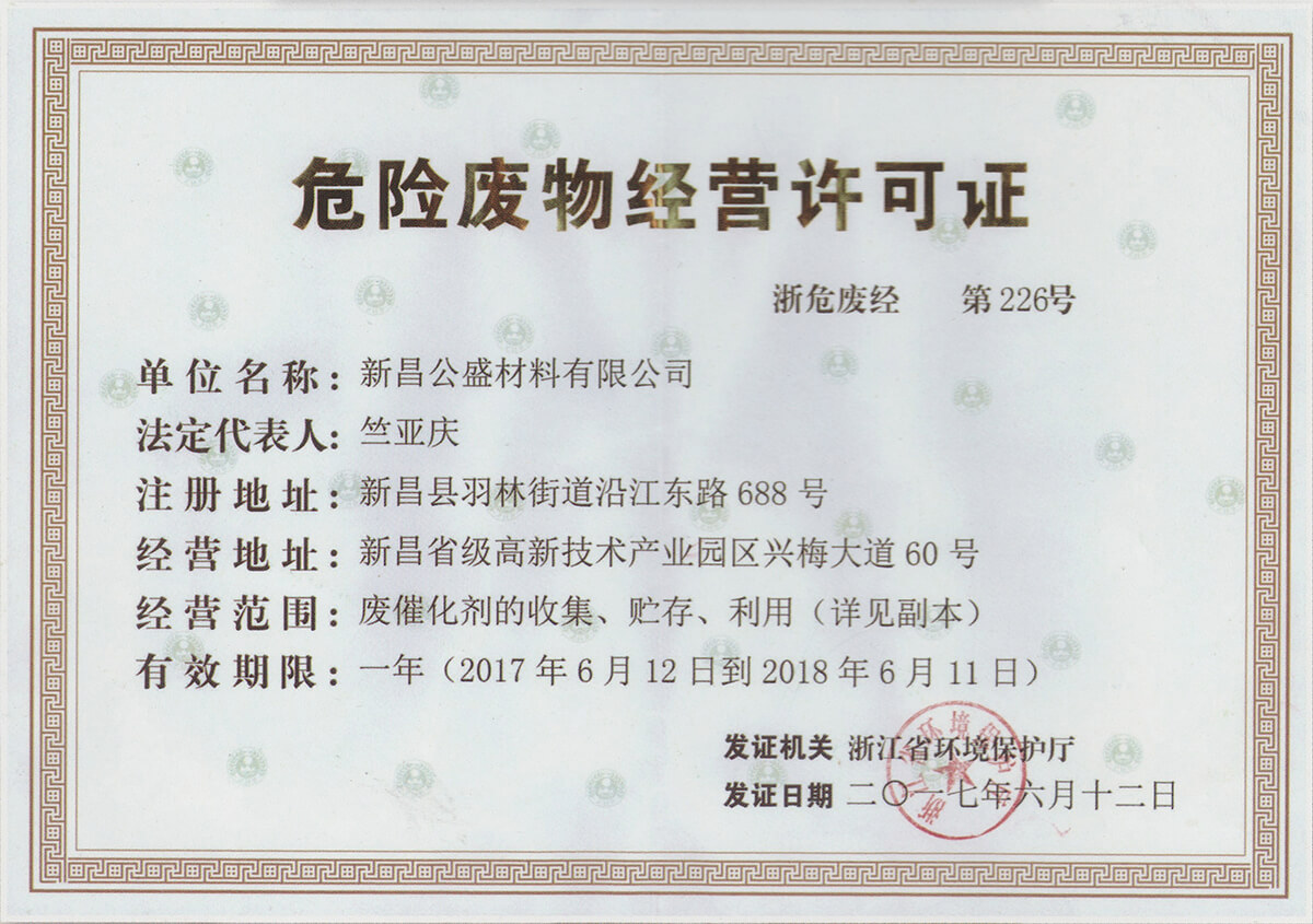 新昌公盛材料有限公司成立于2014年,坐落在江南大佛名城浙江新昌,地理位置優(yōu)越,交通便利,并配備有現代化的廠房和實驗樓,總占地面積80畝。公司聚焦于研發(fā)和生產用于醫(yī)藥、農藥、染料、材料等精細化工領域的貴金屬催化劑。目前主要從事鈀炭、鉑炭、釕炭等多項催化劑及醋酸鈀、DPPF二氯化鈀、雙三苯基膦二氯化鈀、四三苯基膦鈀、DBA鈀等均相催化劑的研發(fā)、生產、銷售以及失效鈀、失效鉑催化劑的回收再加工等業(yè)務。公司成立以來,一直以提升客戶產品的競爭力為經營宗旨,通過持續(xù)改進客戶所用催化劑的性能,來提高客戶產品的收率,提高催化劑的套用次數,提高失效催化劑的貴金屬回收率,來降低客戶產品中貴金屬催化劑的成本,進而提升客戶產品的競爭力。